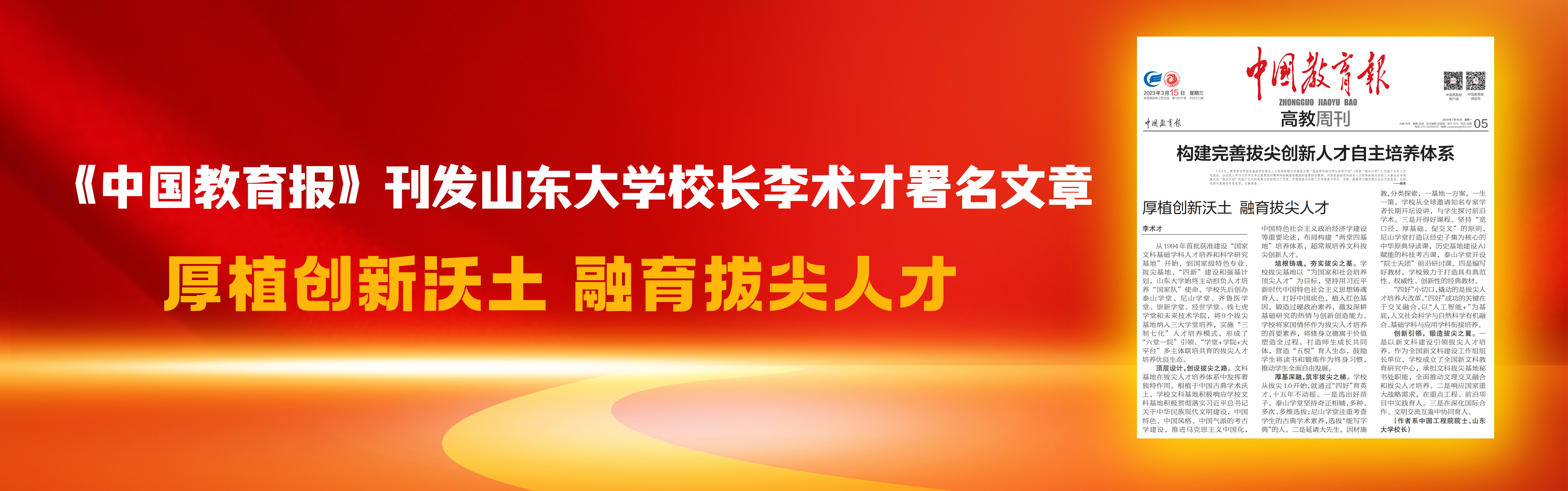 《中国教育报》刊发77779193永利官网校长李术才署名文章:厚植创新沃土 融育拔尖人才设计:刘怡康供图:宣传部