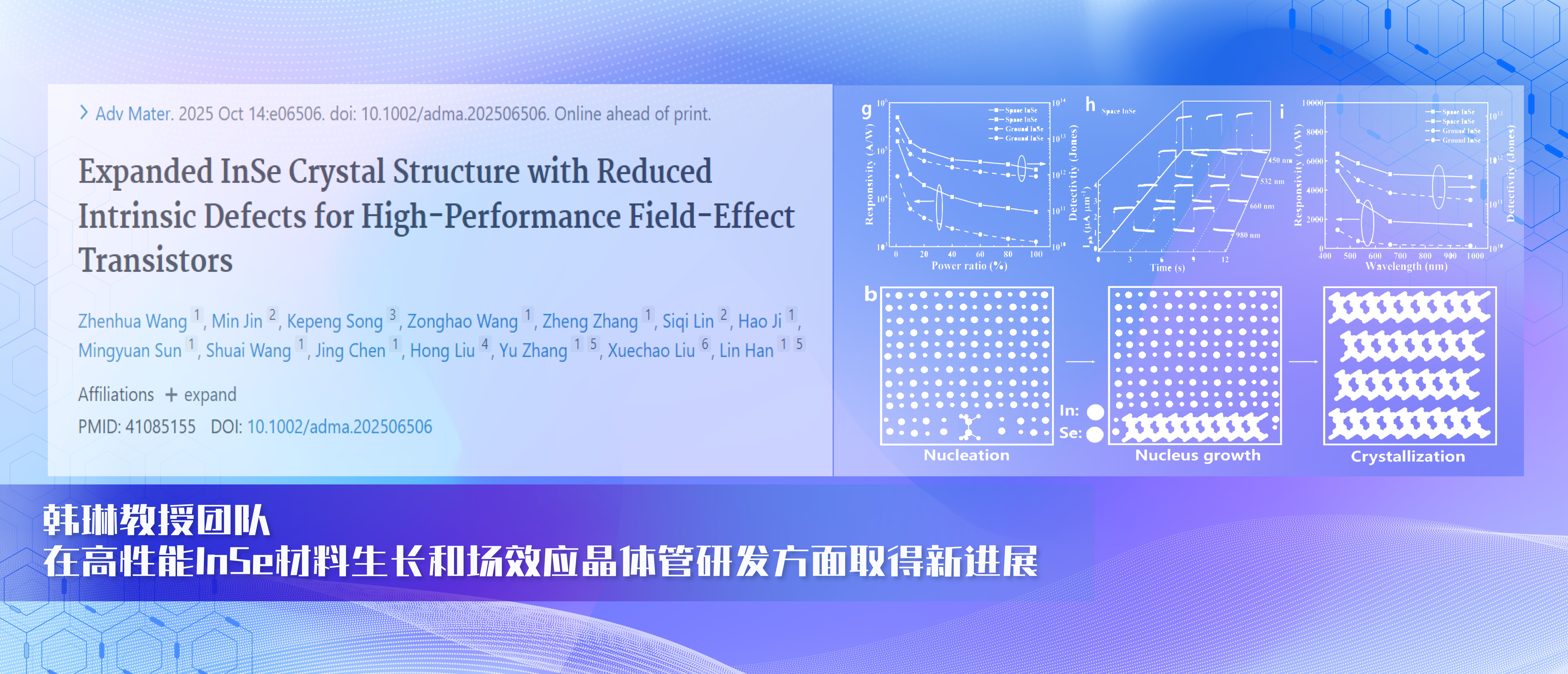韩琳教授团队在高性能InSe材料生长和场效应晶体管研发方面取得新进展设计:吕天阳供图:宣传部